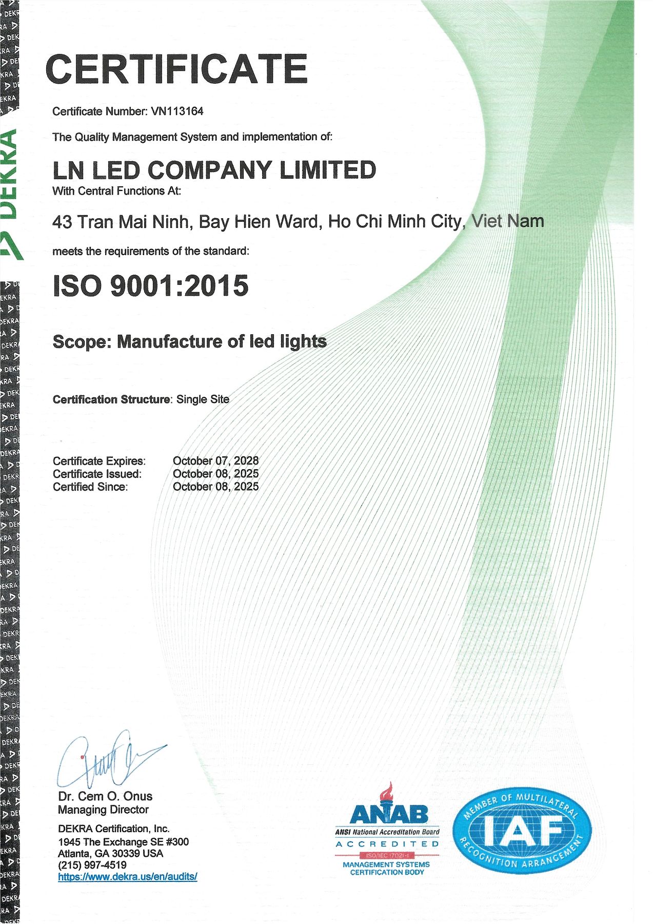Hilykan (under LYK) has achieved ISO 9001:2015 certification for its LED manufacturing operations.
