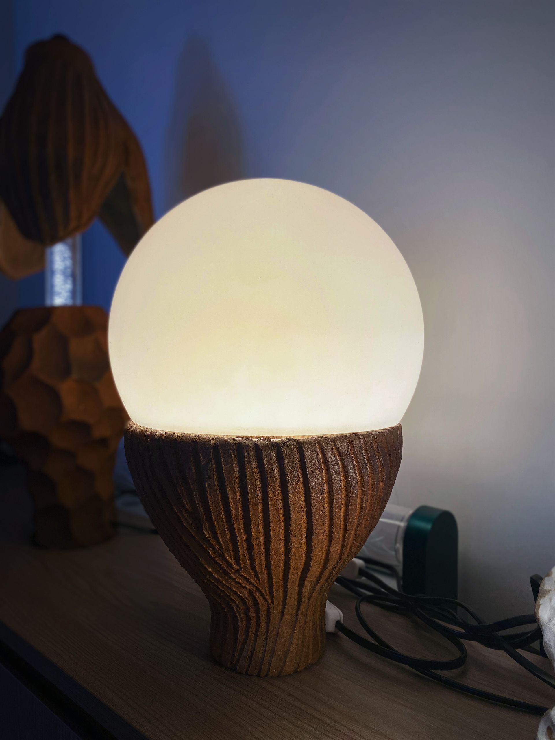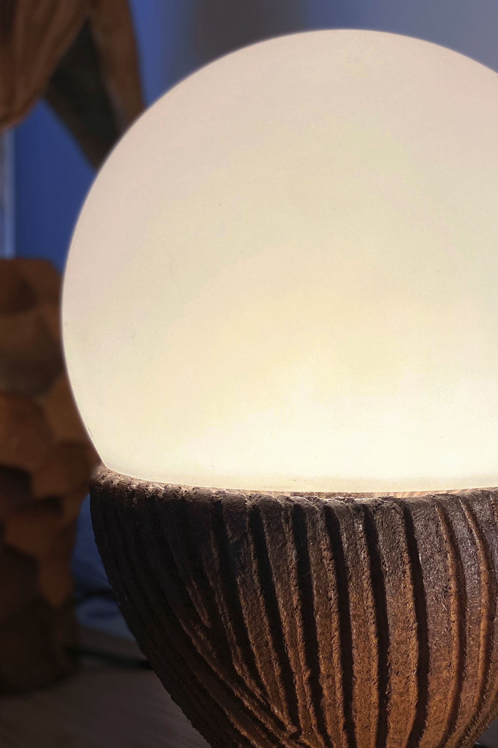 Hidden beneath the rustic exterior of raw ceramic lies a fiery heart – Solbulb, a miniature sun, burning brightly from within.