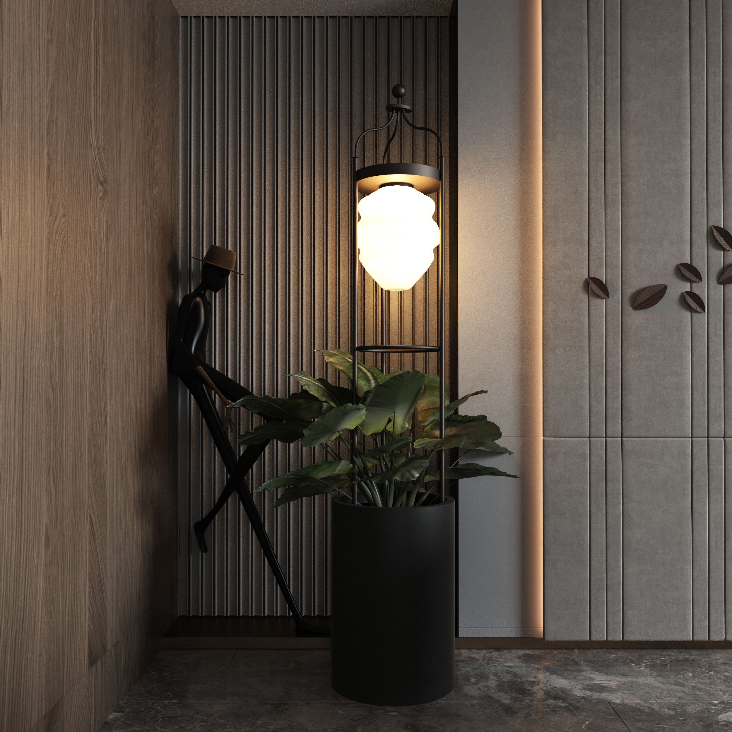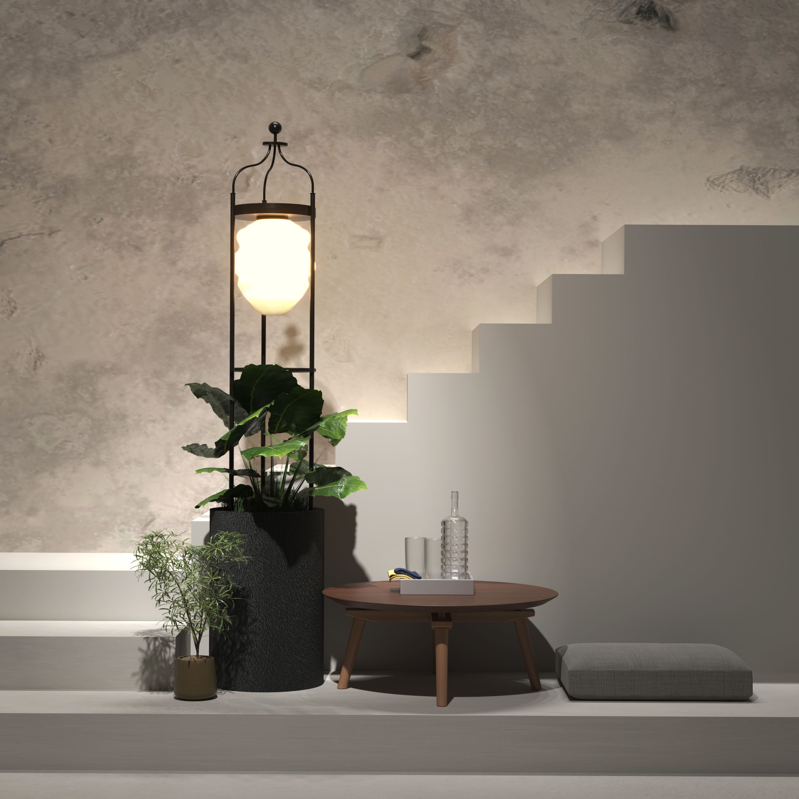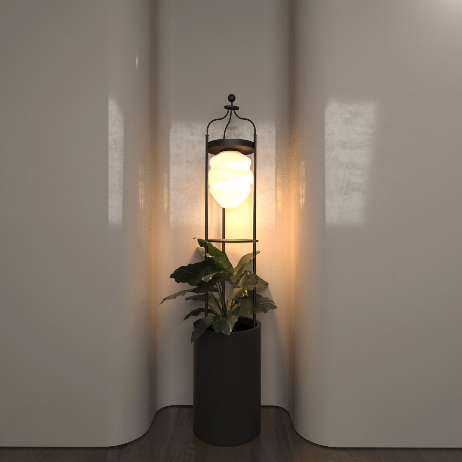 Featuring a tall yet graceful cylindrical frame paired with intricately designed bulbs, Sole Verde casts gentle, diffused light that spreads throughout your space. The highlight of this lamp lies in its metal base, specially designed to showcase greenery, bringing a fresh and natural vibe into your surroundings.