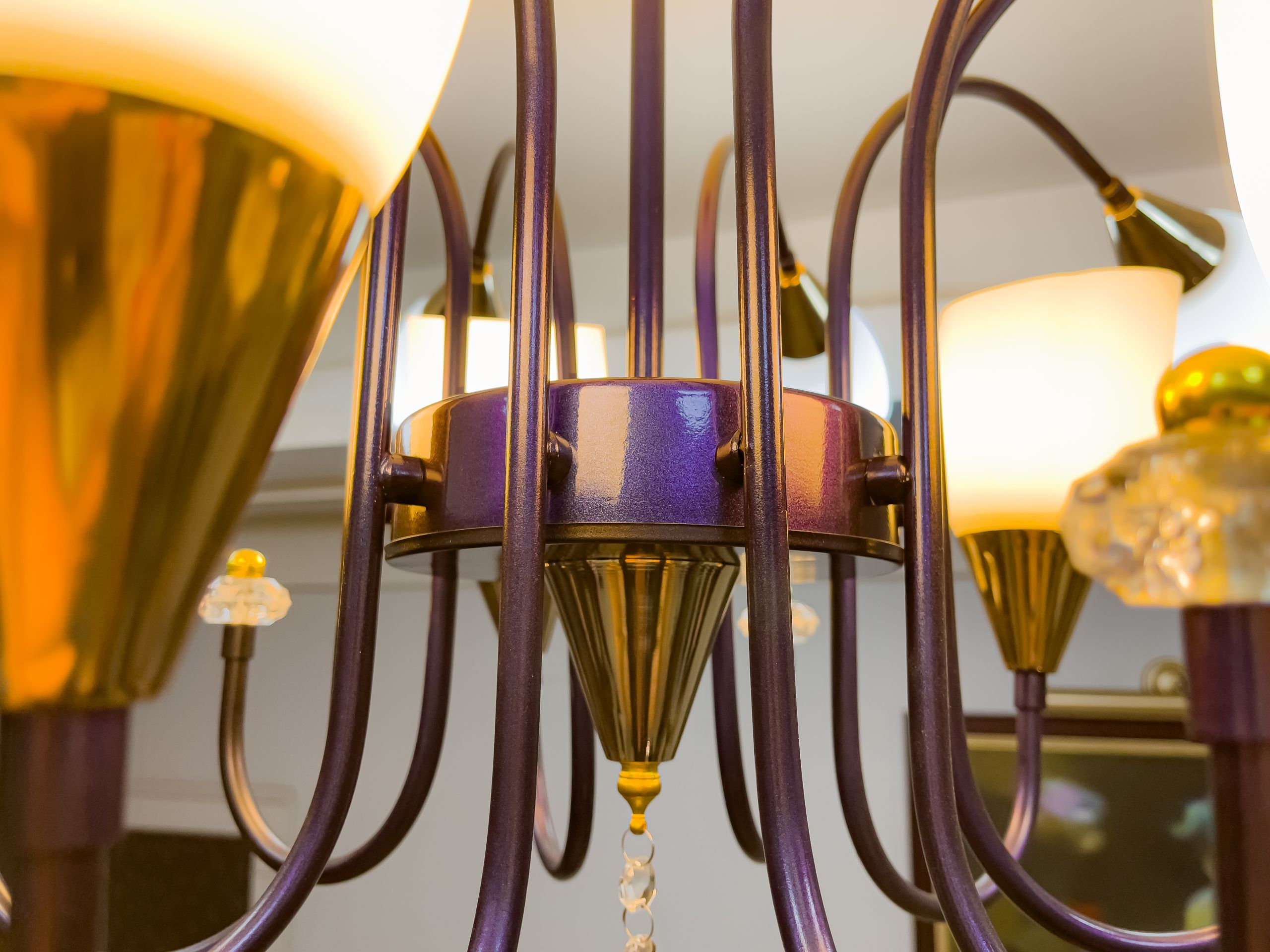 Bearing the graceful features of the flower of the same name, Arum has a soft curved lampshade design, with distinctive gradient art on the matte surface and a purple base as the main accent.